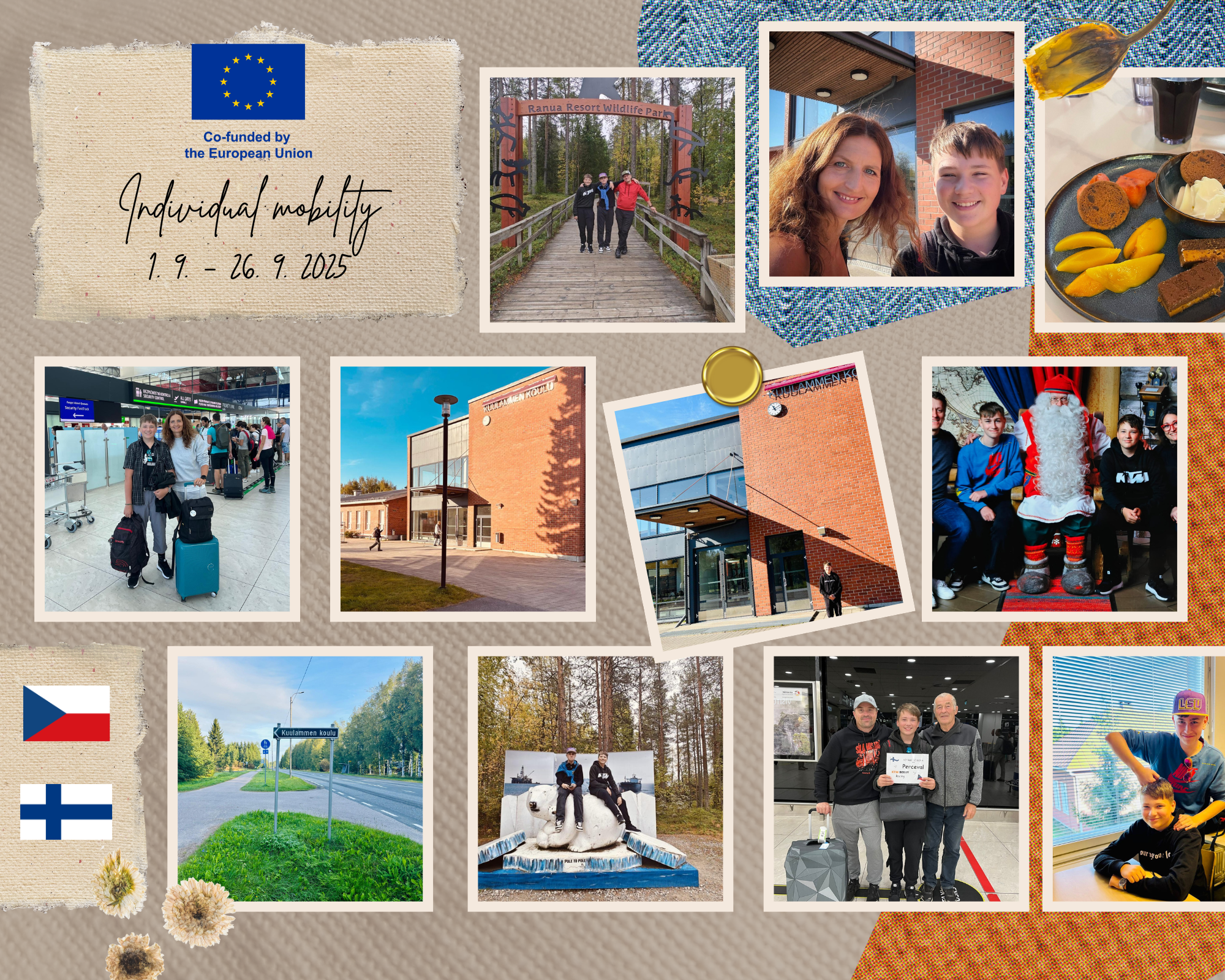 Náš žák se od 1. do 26. září 2025 zúčastnil individuální mobility v rámci programu Erasmus+, během které navštěvoval partnerskou školu ve Finsku.