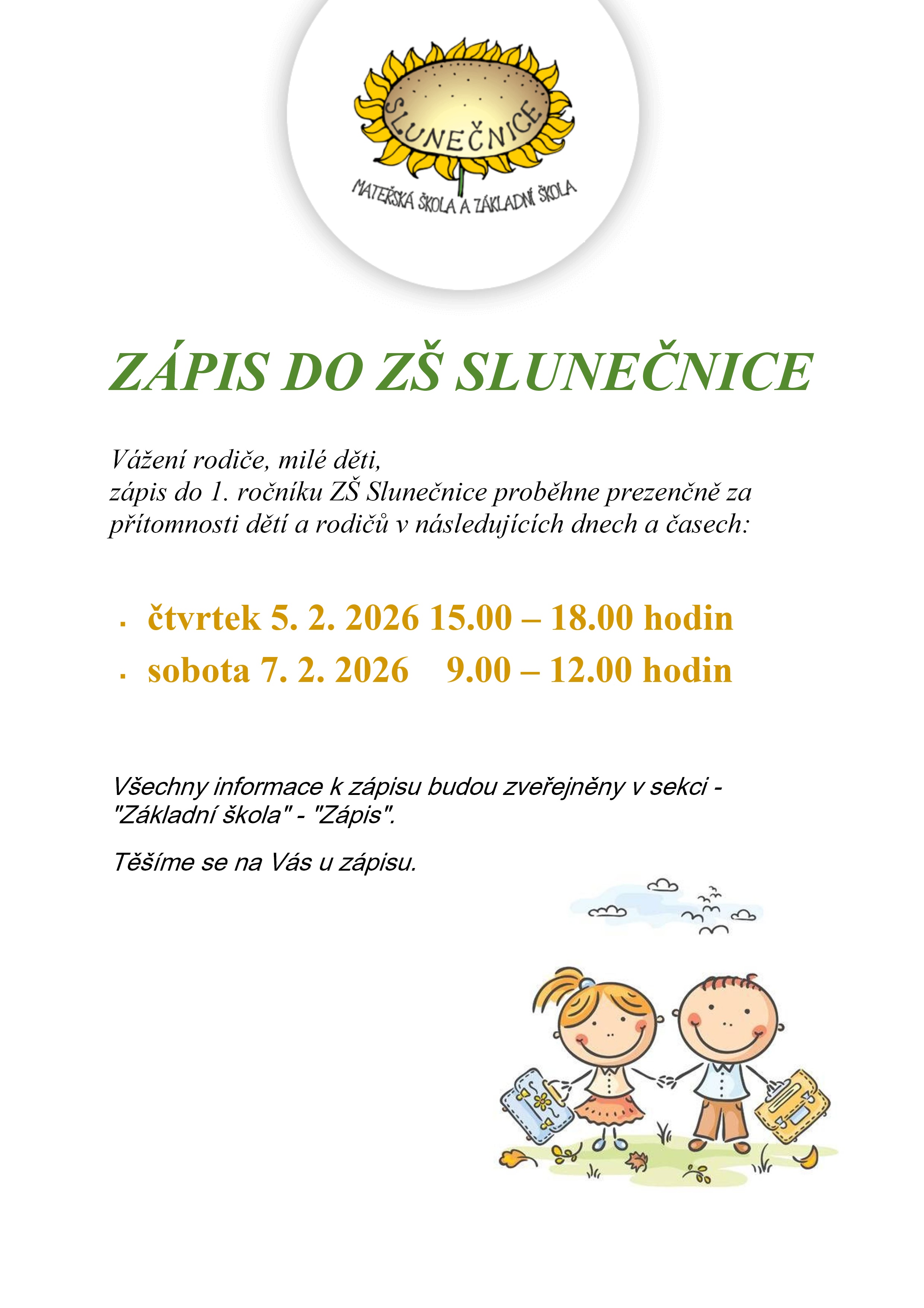 Vážení rodiče, milé děti,